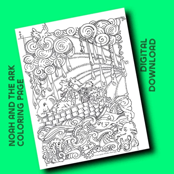 Noah S Ark Coloring Page In Three Sizes 8 5x11 8x10 Etsy